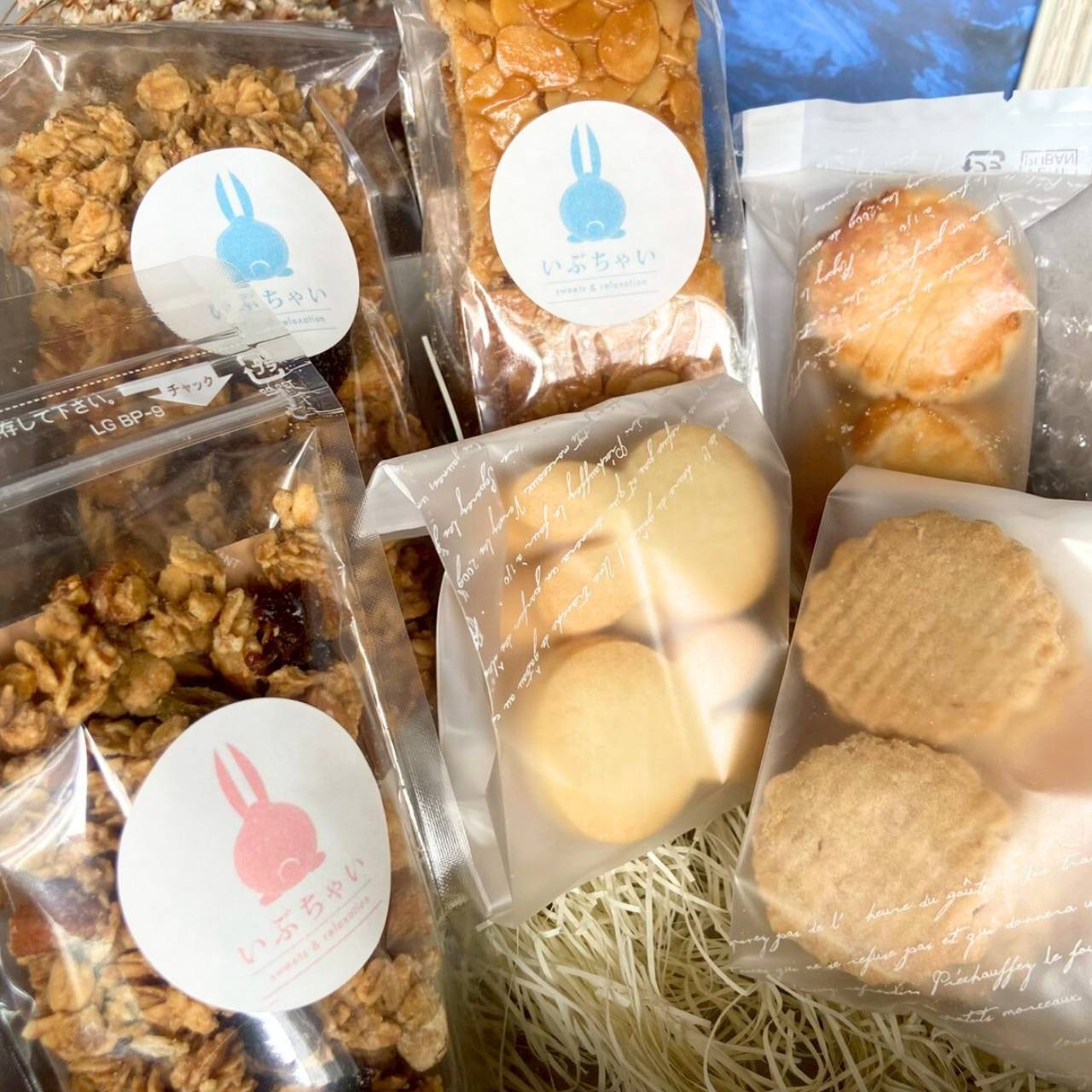 グラノーラ 40g、グラノーラ 90g、いぶちゃいクッキー(レモン風味)、さつまいもクッキー、ガレット・ブルトンヌ、フロランタン